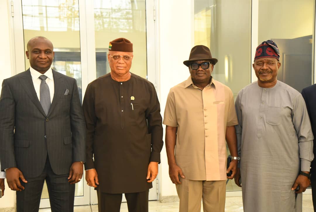 : The NDDC Managing Director, Dr Samuel Ogbuku; the Governor of Akwa-Ibom State, Pastor Umo Eno; NDDC Executive Director of Projects, Sir Victor Antai and the NDDC Executive Director of Corporate Services, Hon. Ifedayo Abegunde, during a courtesy visit at the Akwa-Ibom State Government House, Uyo.
