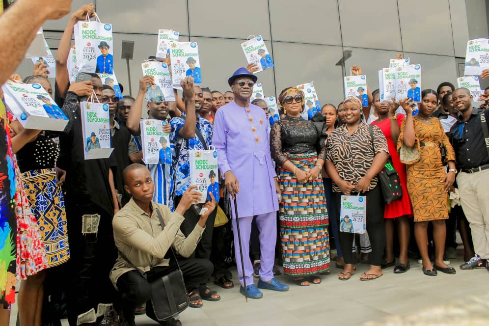 The wife of the state representative on the board of the NDDC, Lady Ogechi Okocha, in her speech, thanked her husband for having a heart of gold while also advising the beneficiaries to ensure they excel in their studies. She said, “You all must realize that you’re now our investment, and the best way to pay us back is to graduate with excellent grades. Remember, the program is for either four or five years and will not cover students with carryovers.”